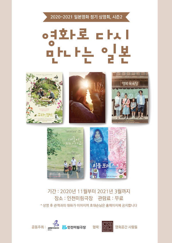 ● 영화로 다시 만나는 일본 일본국제교류기금 서울문화센터와의 협력 진행되는 일본영화상영회의 시즌2가 이제 마지막 작품을 맞이합니다. 그러나 4월에는 시즌3가 이어집니다! 시즌3 안내는 다음 뉴스레터에서 보내드리겠습니다!😁